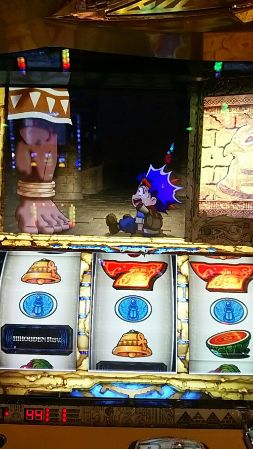 早々のチャンス目から演出がザワザワしだし、神殿最深部まで到達した所でメジェド君の極でかバージョンの左足がズドォーンと出現しました。Σ(゚д゚;)